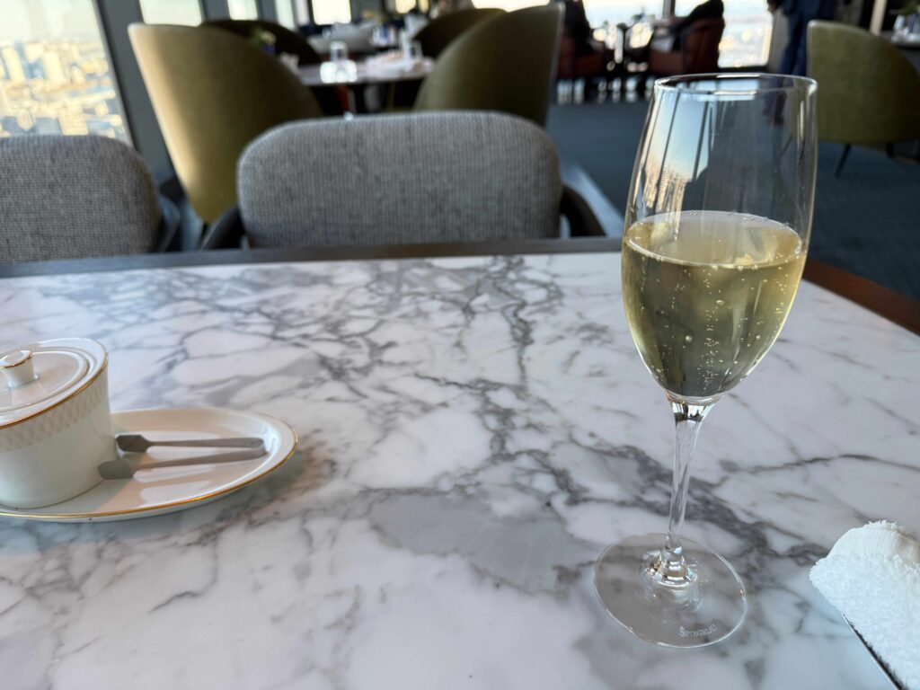 ソフトドリンクやワインなどをオーダーできるので、シャンパン(ポメリー)を頼みました。