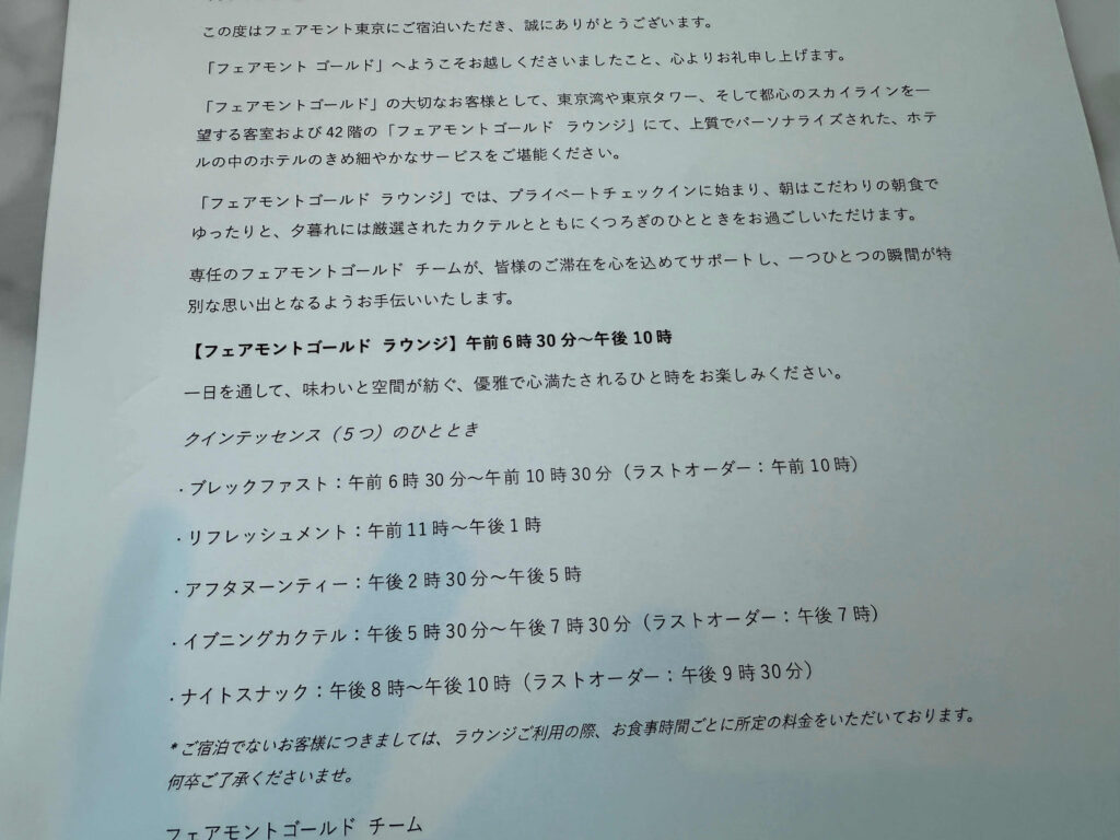 フェアモントのゴールドラウンジは価格に見合う体験ができると確信がありました。