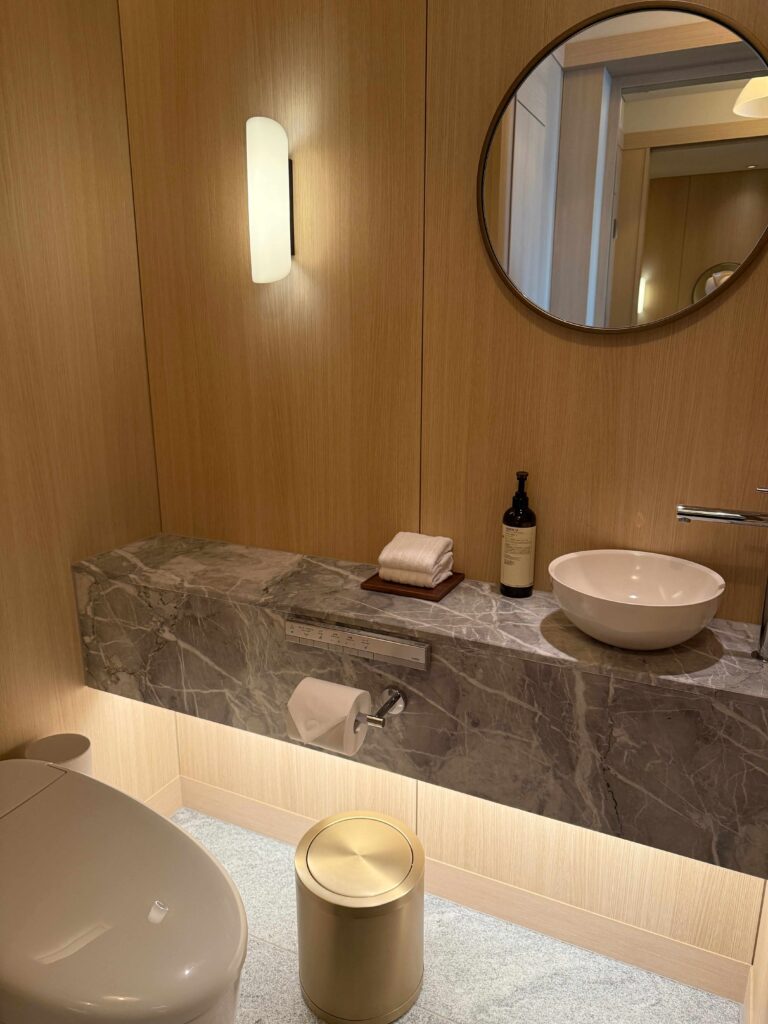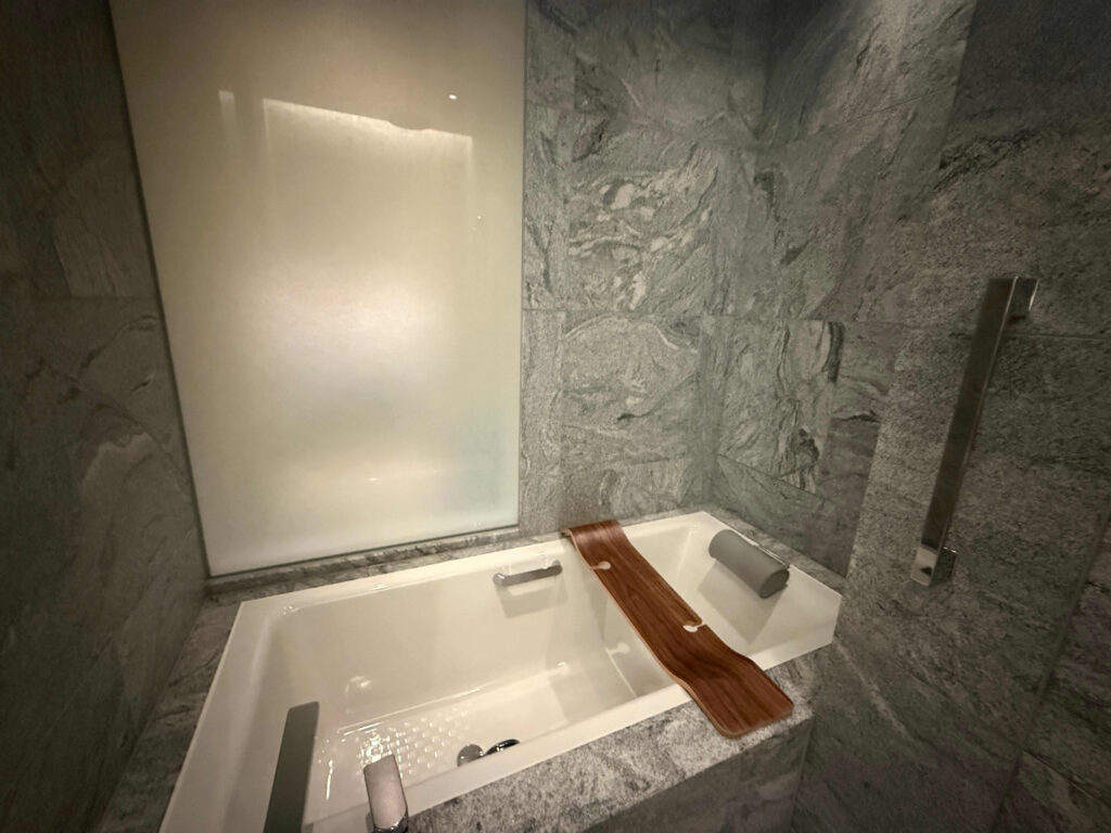 バスルームも広々としていて、見えないけど端の器ににピンクのバスソルトもありました。