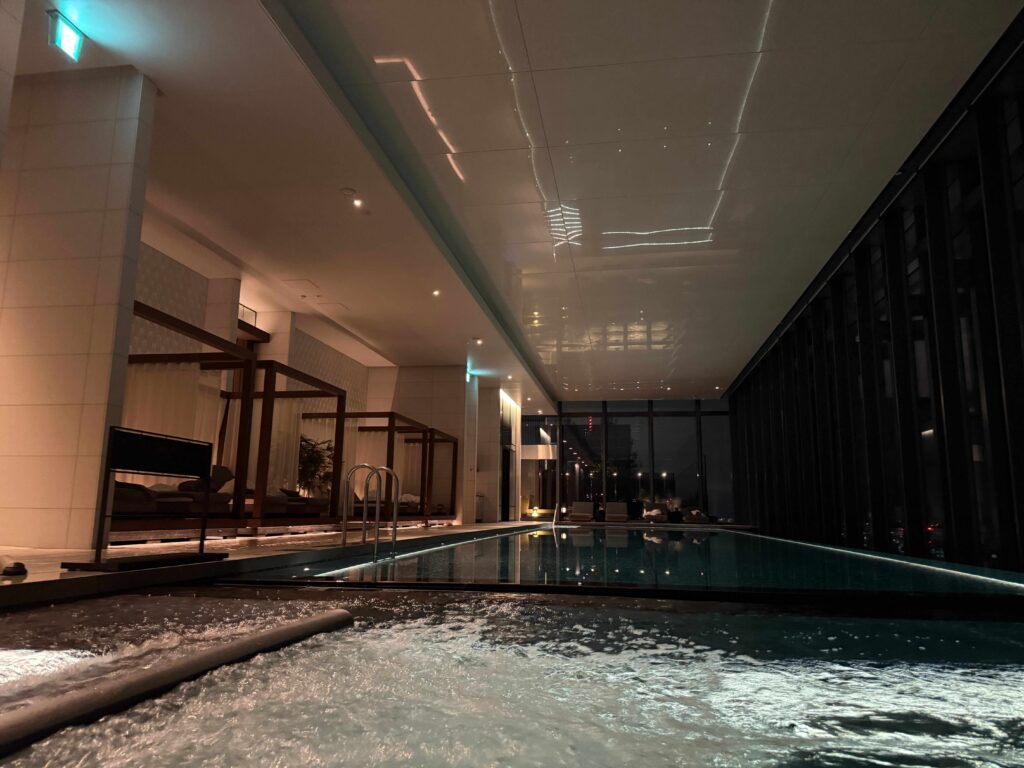 もちろんガチ泳ぎも出来る本格プールではあるものの、綺麗な東京タワーを眺めながらの水中散歩がなんとも楽しい。